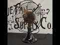 Circa 1918 Emerson type 24646 12" desk fan. Produced during an era that created iconic Emerson desk fans, this model was a precursor to the 29646 which has become an notable icon in the Fan Collector community. Introduced in 1917, the 24 series of models ran into 1919 before replaced by the 27 series. Several notable variations of this model are the smaller diameter base, cast or forged handle, and ball-detent oscillator wheel. I believe this to be a slightly later 24 series example as it contains a stamped steel hub. Overall an excellent all original example of a highly desirable and seldom seen type #. Fan has been completely disassembled and serviced and runs perfectly on 3 distinct speeds. There is a factory casting flaw on the front lip of the base as shown in the photos. We have upgraded the wiring for safe operation using our OTR+W cloth covered wire. An ideal fan for daily use!!